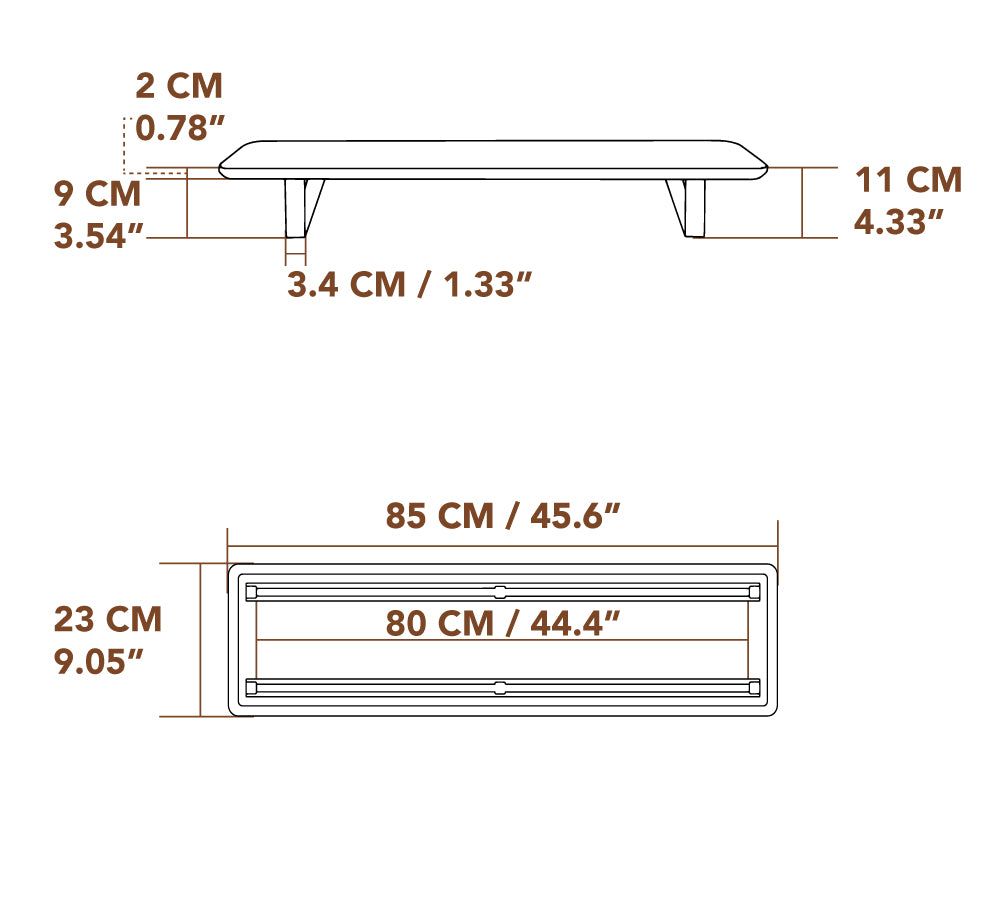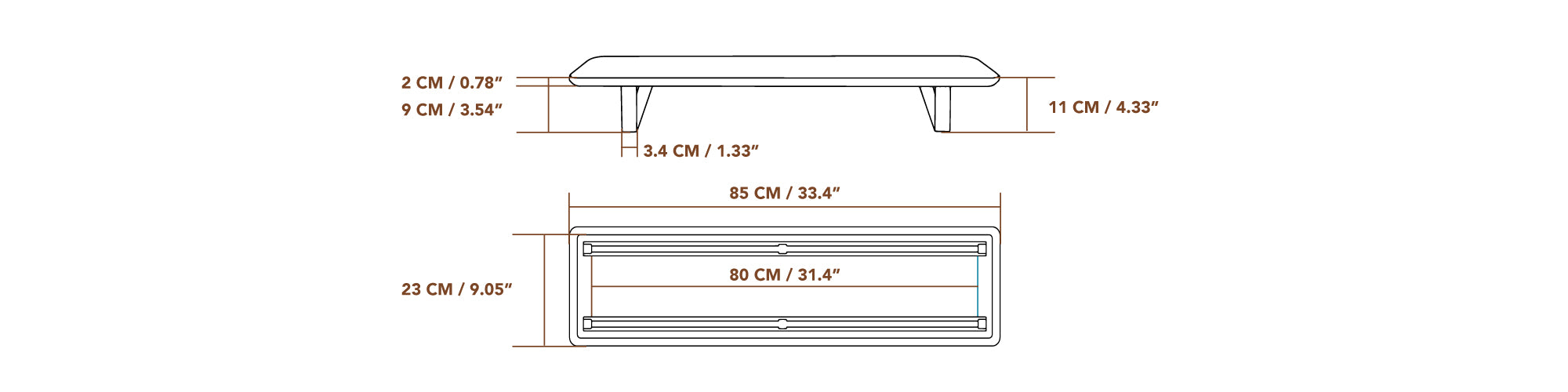 一般桌板在螢幕的長期重壓後,容易產生凹陷的疑慮,Moodular 採用「內坎的金屬滑軌設計」徹底解決此疑慮,更讓總承重上升至65公斤。