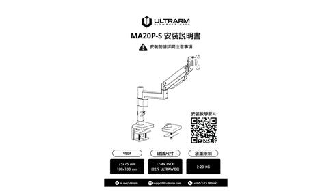 ULTRARM螢幕支架內都附有「夾桌式」及「穿孔式」2種安裝方式的組件。ULTRARM螢幕支架內都附有「夾桌式」及「穿孔式」2種安裝方式的組件。