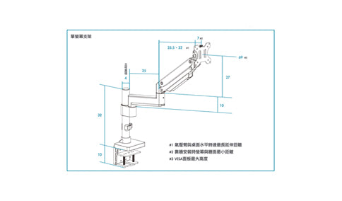 螢幕支架是設計給螢幕使用的,請先安裝上螢幕增加重量,再依照下列說明調整氣壓閥: